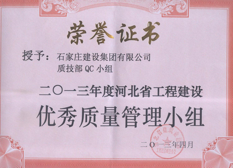 2013年度河北省工程建設優(yōu)秀質(zhì)量管理小組